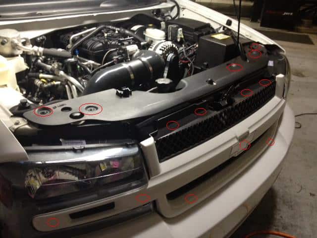 Grille & Top Trim Pushpin/bolt locations circled