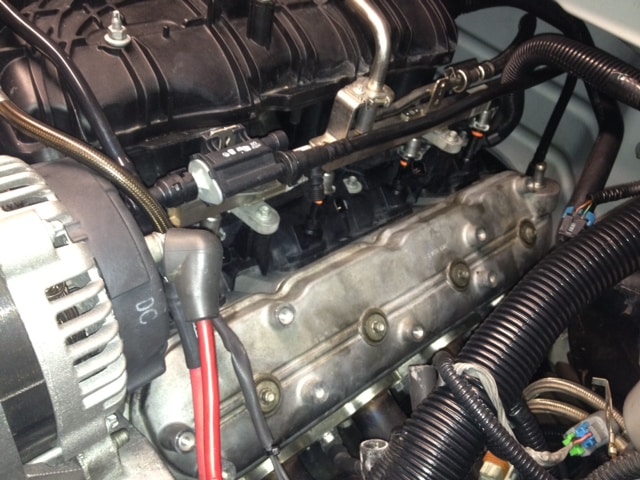 - Lay engine harness back over intake manifold and reinstall all connectors except for coil packs. Don’t forget the ground on the passenger side head.