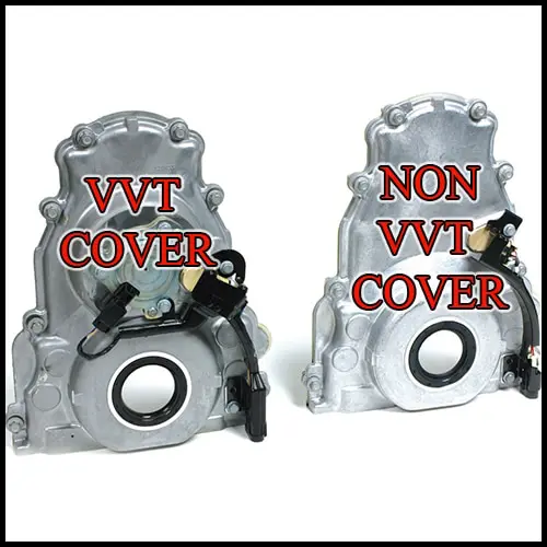 You can tell if your motor has VVT by looking at the cover. You can see the camshaft phaser actuator on the top, and also a five pin harness at the bottom. If the motor does NOT have VVT, there will be no phaser, and the harness will be three pin.