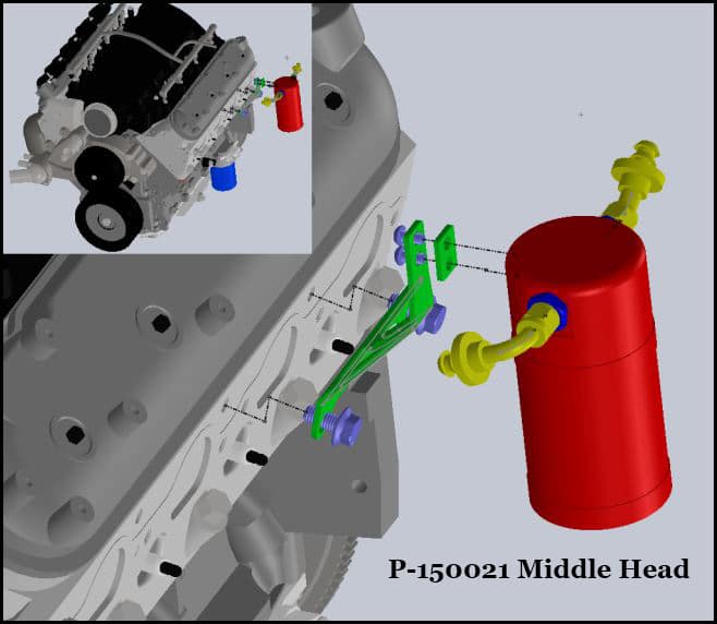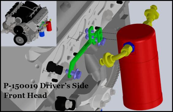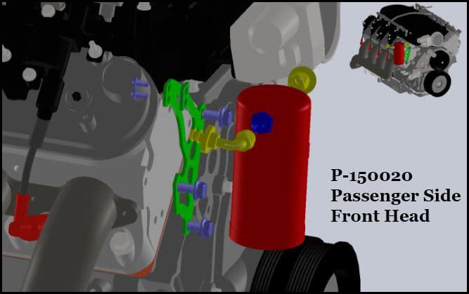 P-150019 Driver’s Side Front Head – fits 2010-2014 Camaro LS3 (not with stock intake, not with Airaid), L99, and LSA (works with Rotofab heat exchanger reservoir also!). 2007-2013 Full Size Trucks with 4.8L, 5.3L, 6.0L, 6.2L.