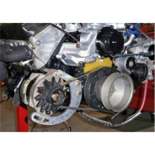 This bracket kit will relocate your stock LT1 alternator to the lower passenger side of the engine. This eliminates the power steering, air conditioning, and tensioner, which will cut roughly 35 pounds off the nose of your car. Your kit will include the bracket, hardware, and belt (if selected). Bracket is laser cut by a CNC machine. Heavy-duty design will stand up against abuse.